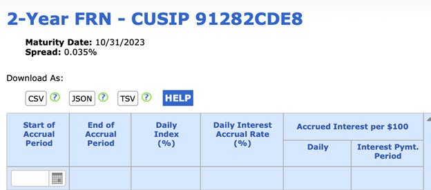 Each page shows the information for a specific FRN security by its CUSIP number.